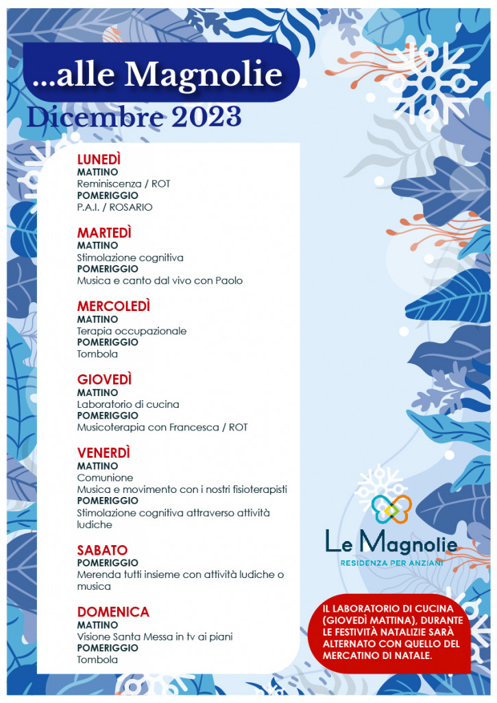 Tutti gli appuntamenti del mese natalizio in Struttura