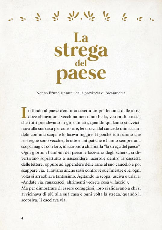 In occasione della festa dei nonni, il 2 ottobre 2017, in tutte le 60 strutture del Gruppo verrà organizzata la lettura animata di uno dei racconti come chiusura della giornata a sfondo intergenerazionale, che sarà, ovviamente, a tema fiaba. Per questa occasione speciale, vi regaliamo la possibilità di leggere una di queste fiabe in anteprima. Ecco la storia di Nonno Bruno, 87 anni, nel racconto La Strega del Paese: