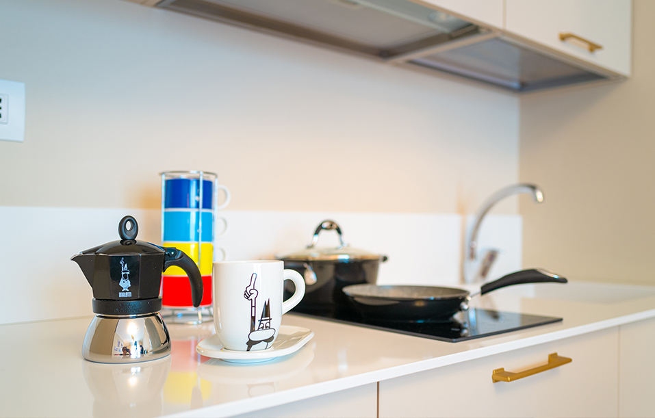 Tutti gli appartamenti sono dotati di accesso indipendente. Sono interamente arredati secondo i canoni del gusto contemporaneo: cucina con piastre ad induzione, frigorifero, forno combinato (a microonde e statico), televisione sia nella zona giorno che nella zona notte.